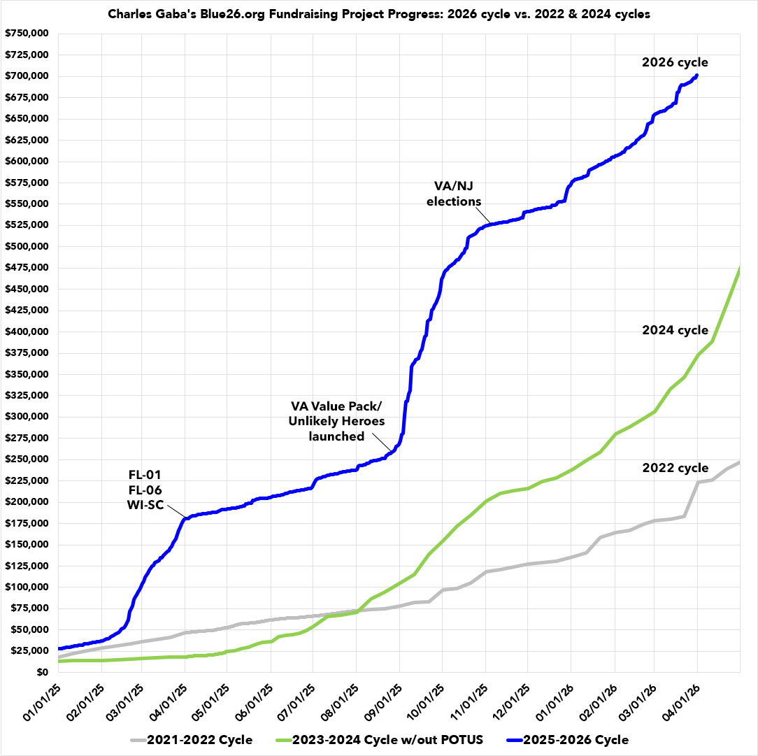 As of the end of March, I've raised 3.1x as much for Democrats as I had at the same point 4 years ago...and nearly twice as much as I had at this point 2 years ago!