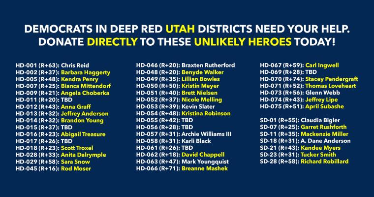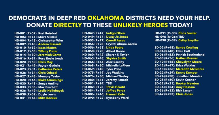 Donate to Democrats running in deep red districts to boost turnout & force Republicans to defend their turf!