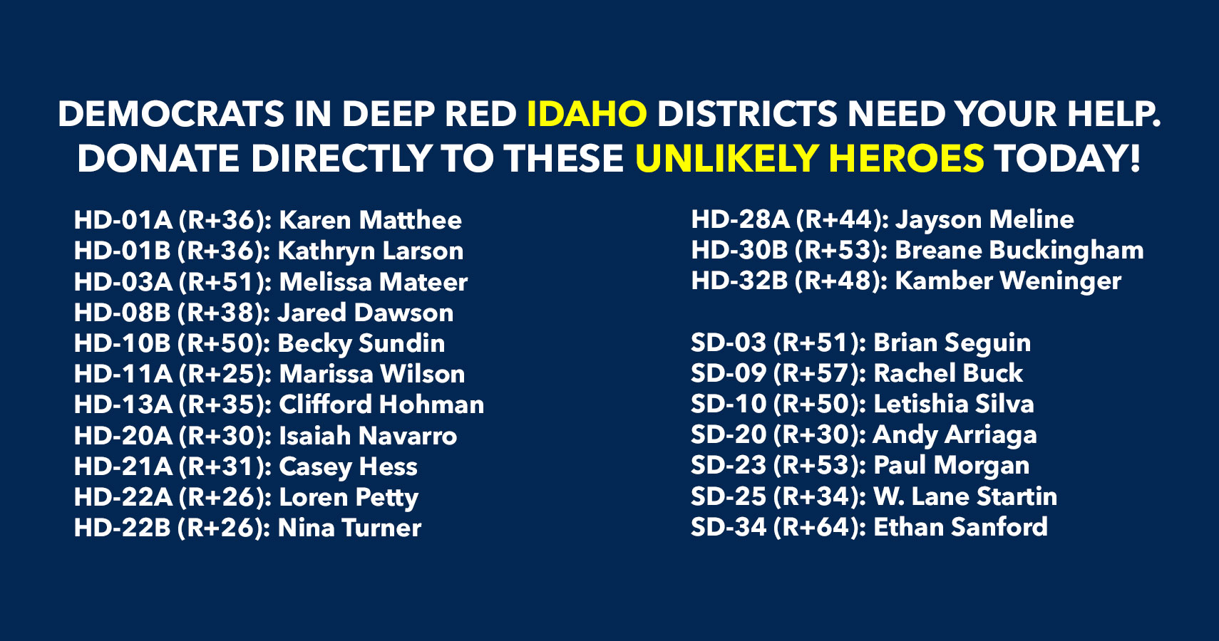 Donate to Democrats running in deep red districts to boost turnout & force Republicans to defend their turf!
