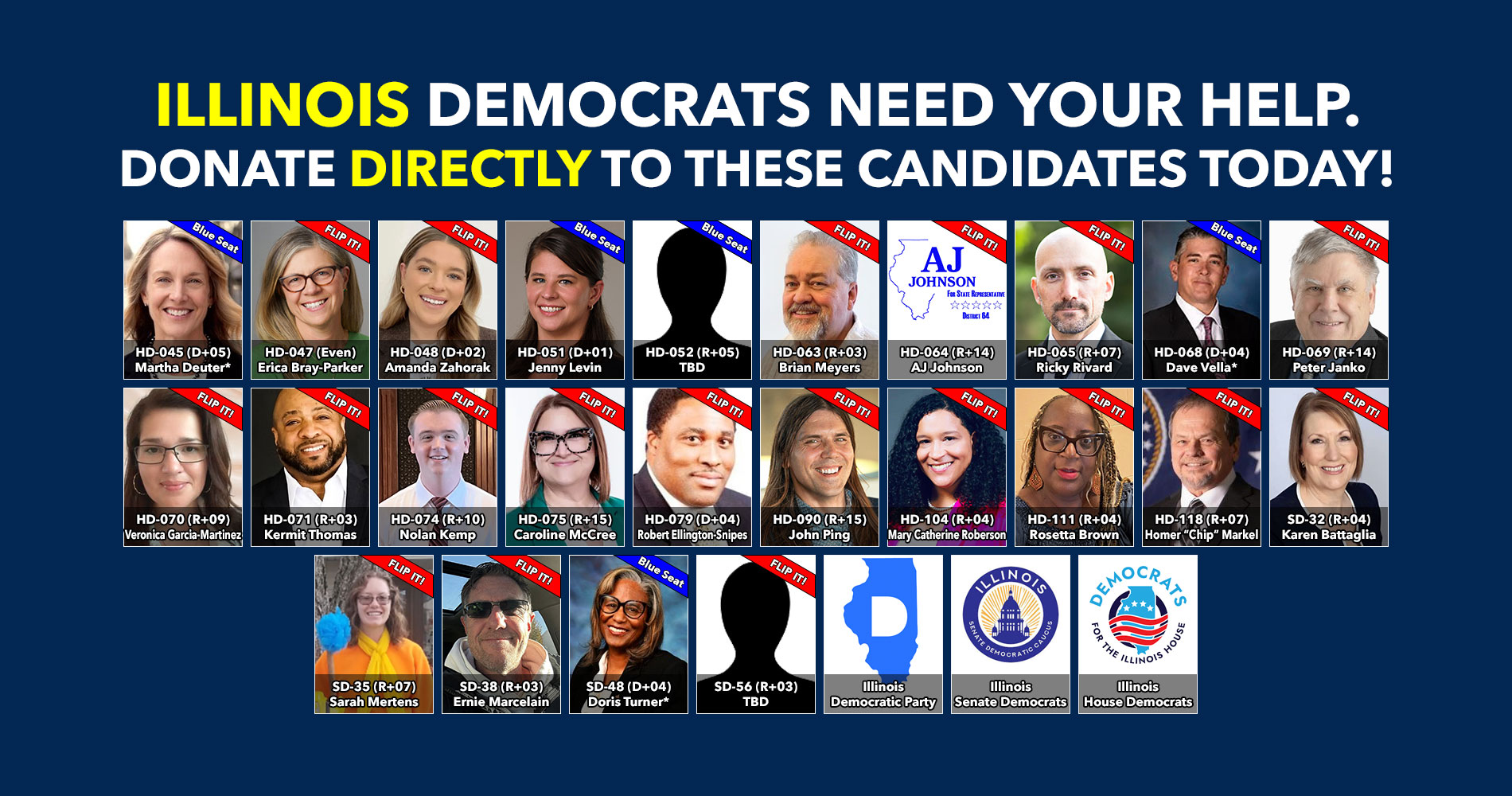 Donate to Democratic candidates running in competitive districts to keep & flip as many seats blue as possible!