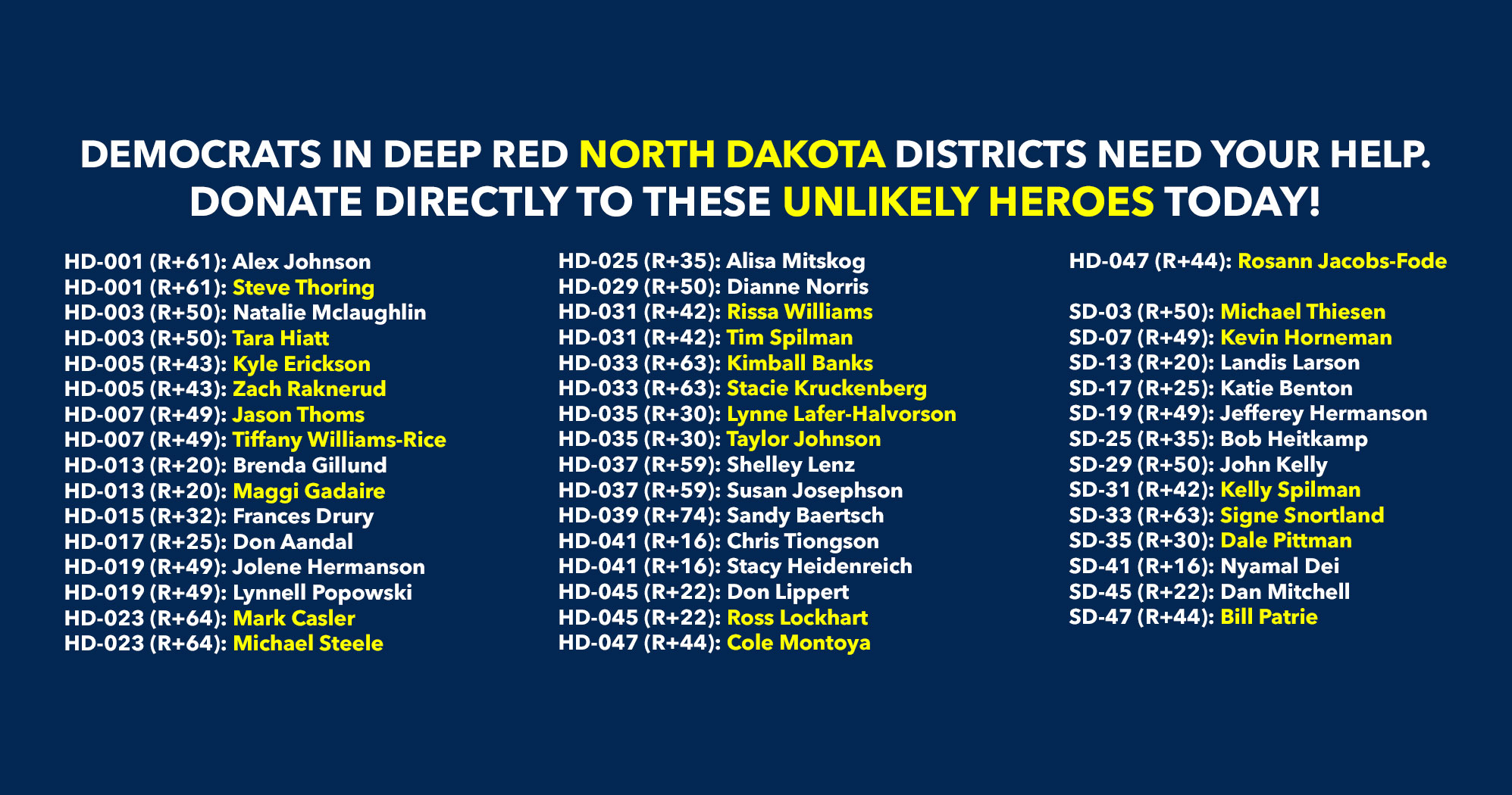 Donate to Democrats running in deep red districts to boost turnout & force Republicans to defend their turf!
