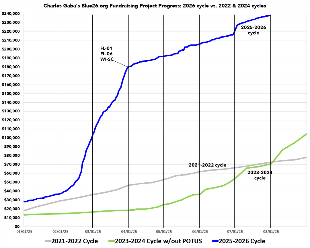 Going forward, assuming things play out similarly to how they did during the last midterm cycle (2021-2022), I'd expect August to look similar to July (perhaps $20K/month or so), followed by things spiking somewhat in September & October ahead of the Virginia & New Jersey  gubernatorial/state legislative races.