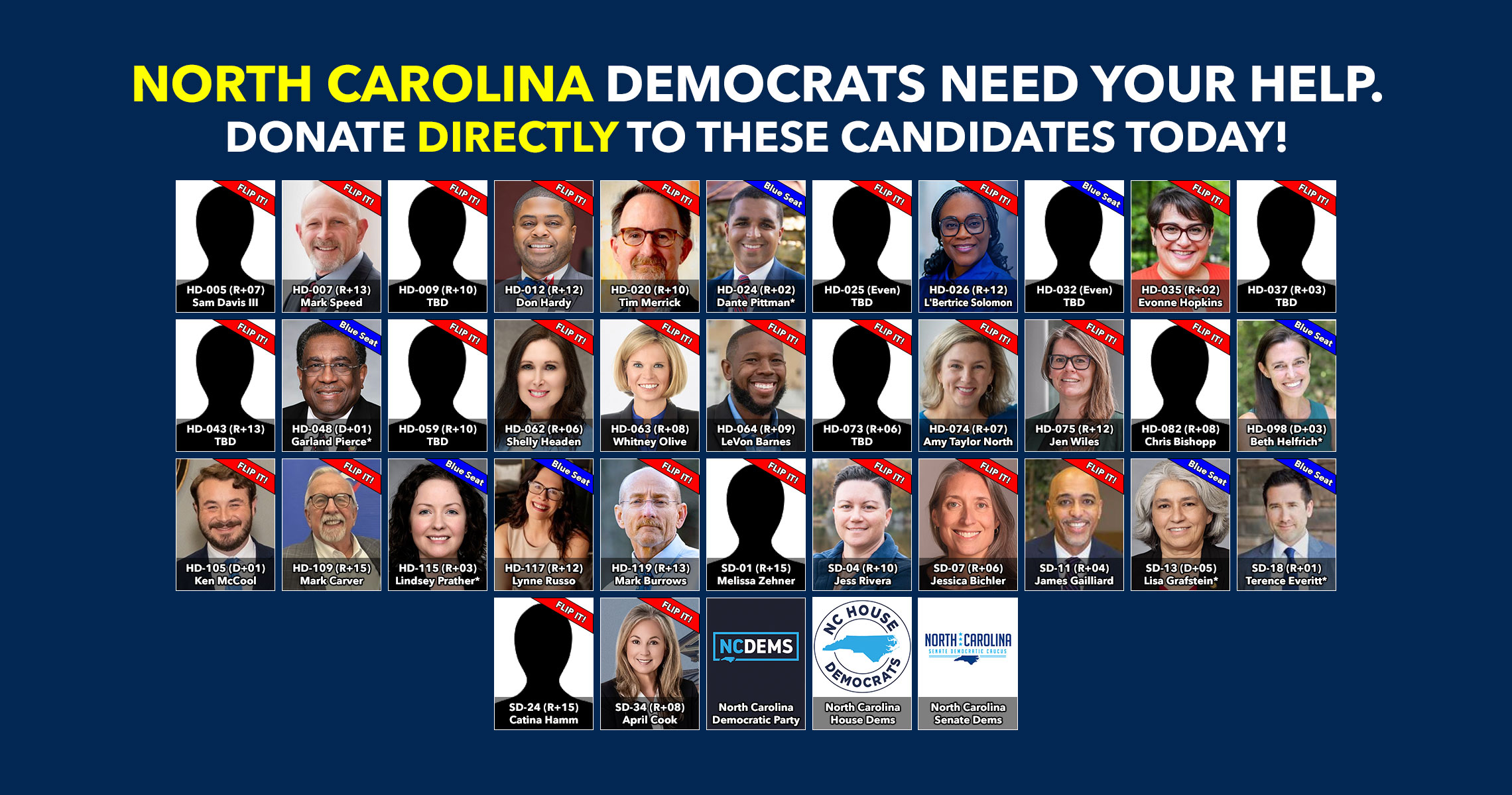 Donate to Democratic candidates running in competitive districts to keep & flip as many seats blue as possible!