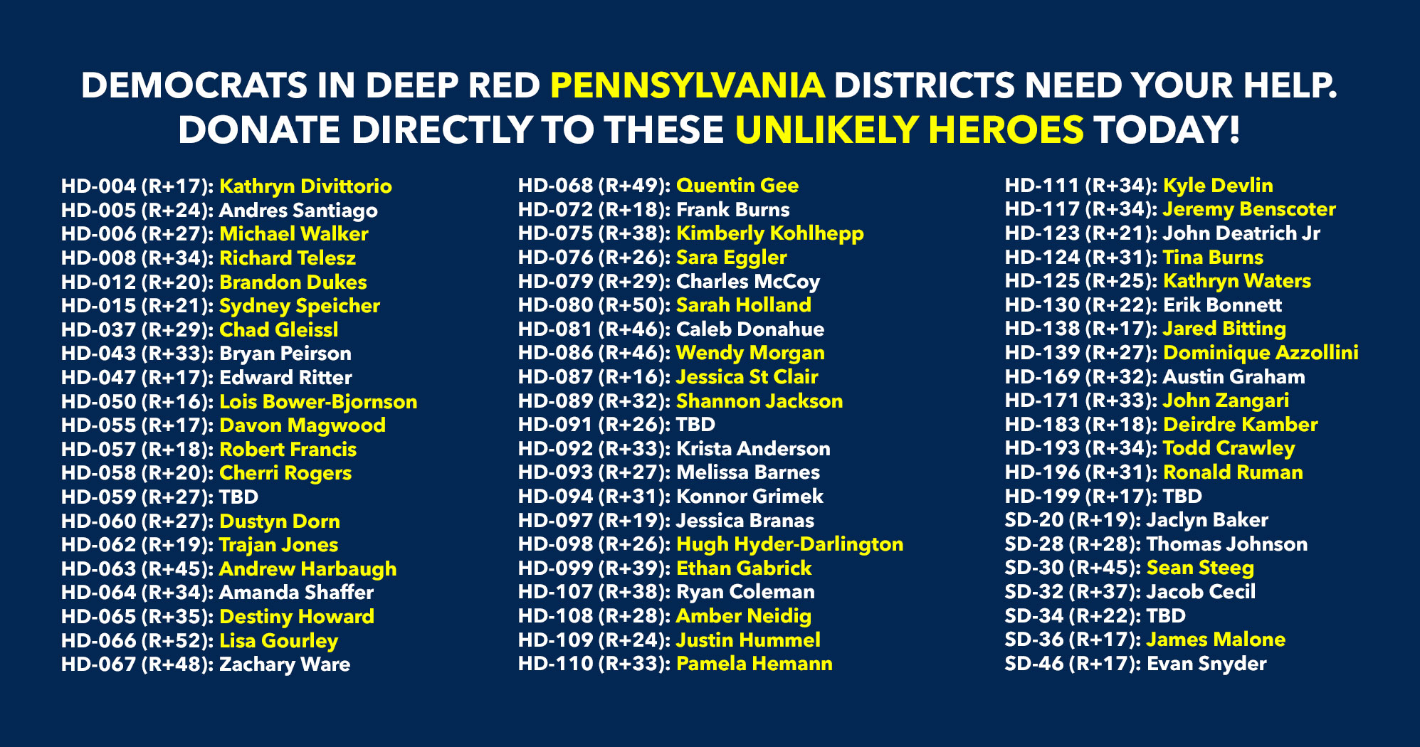 Donate to Democratic candidates running in competitive districts to keep & flip as many seats blue as possible!